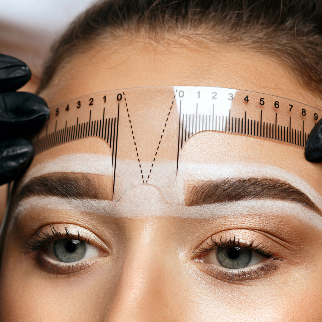 - Phi Ölçümü: Altın oran cetveli kullanılarak ideal kaş başlangıç, kavis ve bitiş noktaları belirlenir.
